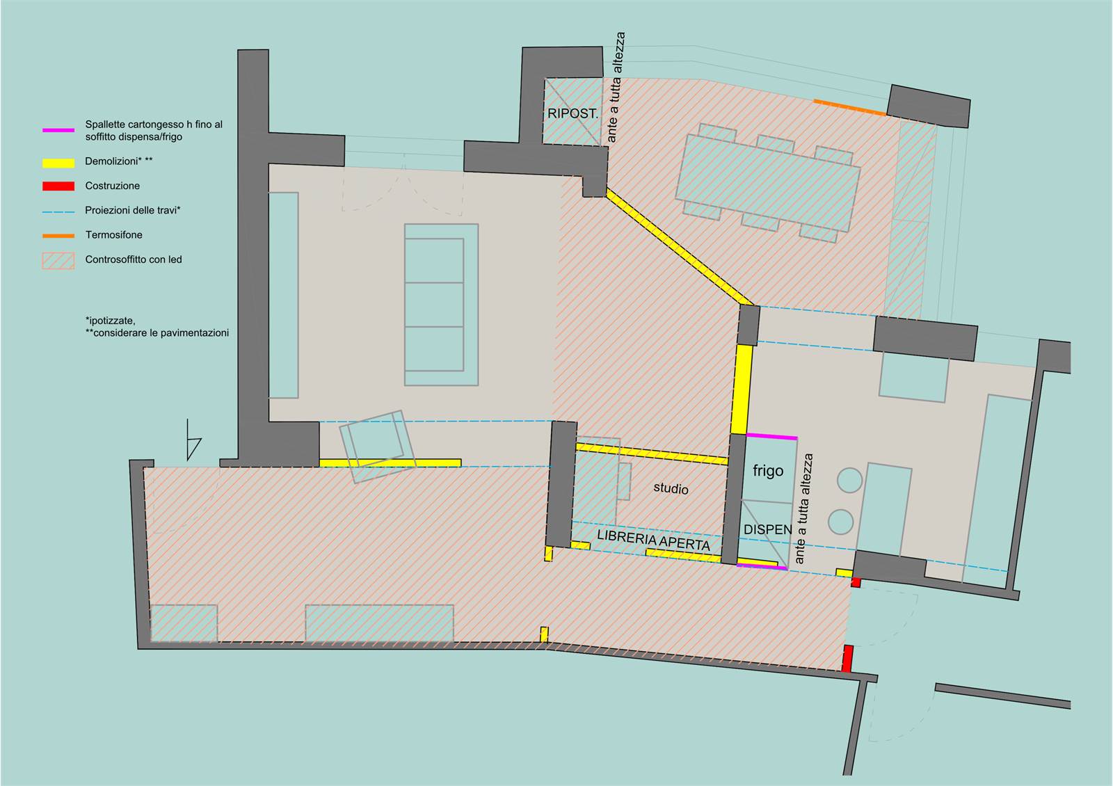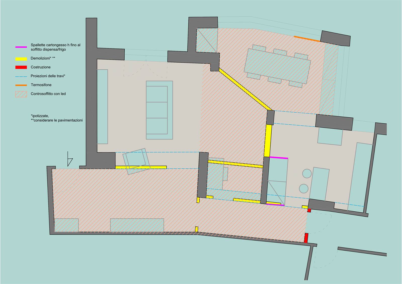 Le immagini e le planimetrie allegate sono rendering fotorealistici volti a illustrare il potenziale di trasformazione dell'immobile a seguito di una ristrutturazione, in particolare della zona giorno. Su richiesta, saremo lieti di fornire la documentazione fotografica dello stato attuale.